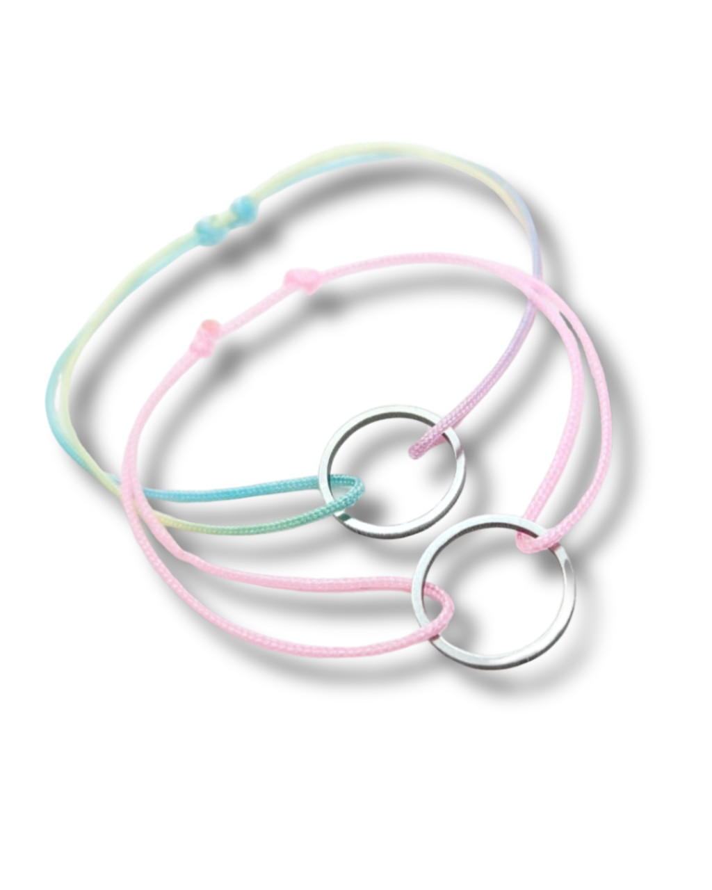 Ez a páros karkötő két egymáshoz kapcsolódó körrel fejezi ki az összetartozást és a végtelen kapcsolatot két ember között.